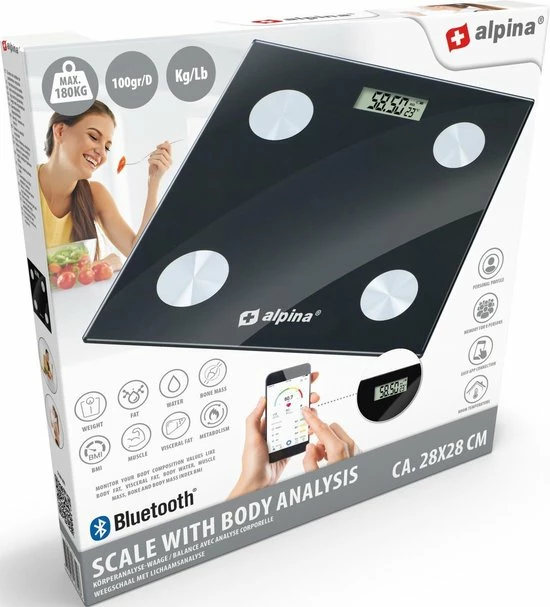 Je gewicht geeft inzicht in je gezondheid. Zoals je van weegschalen mag verwachten, geeft deze elektrische personenweegschaal van Alpina aan hoeveel je weegt. Aanvullend geeft de weegschaal een lichaamanalyse, onder andere van je vetpercentage, spiermassa en BMI. Als je dat wil, communiceert de slimme weegschaal via Bluetooth met een speciale app op je telefoon. Bovendien kan hij voor 8 personen de details onthouden en toont hij de kamertemperatuur.