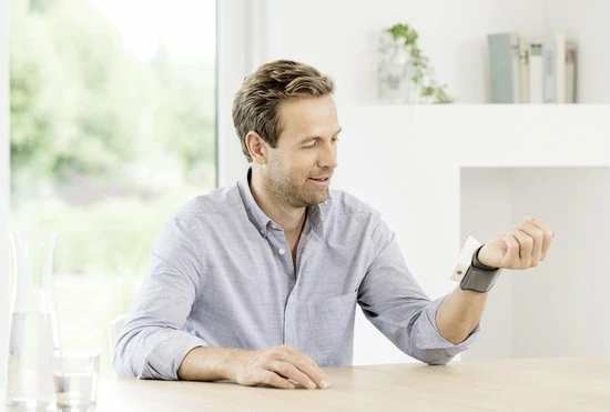 – Volautomatische bloeddrukmeting en hartslagmeting via de pols.