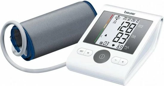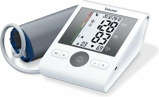 De Beurer BM28 is een volautomatische bovenarm bloeddrukmeter met een eenvoudig te lezen display. De BM28 heeft voor 4 gebruikers geheugenplaatsen waarvan 30 gemeten waarden worden bijgehouden. De bediening is erg eenvoudig waardoor de bloeddrukmeter voor iedereen geschikt is. De bijgeleverde manchet is geschikt voor een bovenarmomtrek van 22 tot 42 cm. Met de BM28 kan je snel en eenvoudig de bloeddruk meten, de gemeten waarden opslaan en het verloop en het gemiddelde van de gemeten waarden laten weergeven. Bij eventueel aanwezige hartritmestoornissen wordt er een waarschuwing gegeven.