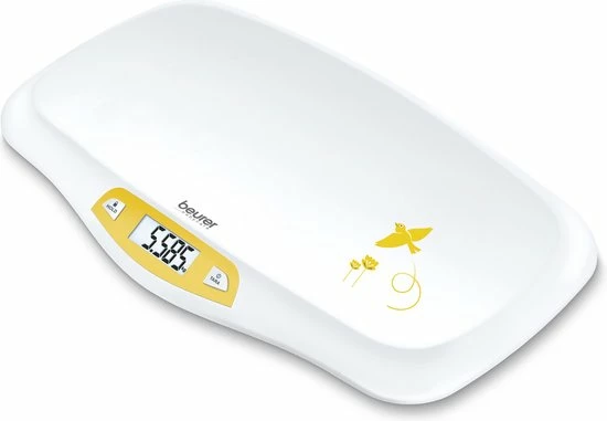 De Beurer BY80 babyweegschaal weegt je baby tot op 5 gram nauwkeurig. De weegschaal met vrolijke plaatjes heeft een gebogen weegoppervlak waardoor je baby goed blijft liggen. Je leest vervolgens het gewicht af van het display aan de voorzijde van de weegschaal. Beweeglijke baby’s zijn geen probleem voor de Beurer BY80. De hold-functie zorgt ervoor dat je toch het juiste aantal kg’s, lb’s of oz’s afleest. Daarnaast zorgen de antislipvoetjes ervoor dat de weegschaal stevig blijft staan.De capaciteit van deze weegschaal is 20 kg en wordt geleverd inclusief batterijen.