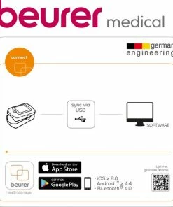 Pc-software voor een gedetailleerde weergave en analyse voor Windows 7 SP1 of hoger, downloadbaar via : https://connect.beurer.com/download/nl-nl/#/software (beurer SpO2 Assistant)