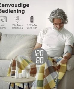 ? Inclusief Batterijen, USB – Oplaadsnoer en Manchet ? Nederlandstalige bijsluiter ? Makkelijk in gebruik ? Klantenservice 7/7 beschikbaar ? Slaat automatisch 240 gegevens op ? Detecteert onjuist aangebracht manchet ? Meet onregelmatige hartslag ? Meet gemiddelde over 3 metingen