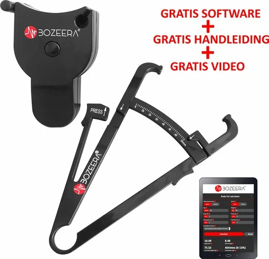 De BOZEERA? HUIDPLOOIMETER EN BODY MASS TAPE. Eenvoudig in gebruik en perfect om inzicht te krijgen in zowel omtrek van lichaamsdelen als je lichaamsvetpercentage.