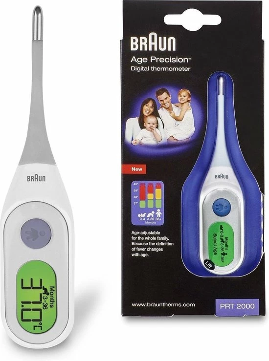 De Braun PRT2000 – Digitale lichaamsthermometer is een handige digitale thermometer met leeftijdsafhankelijke koortsindicator waarmee het interpreteren van een meetresultaat geen willekeurige schatting meer is.