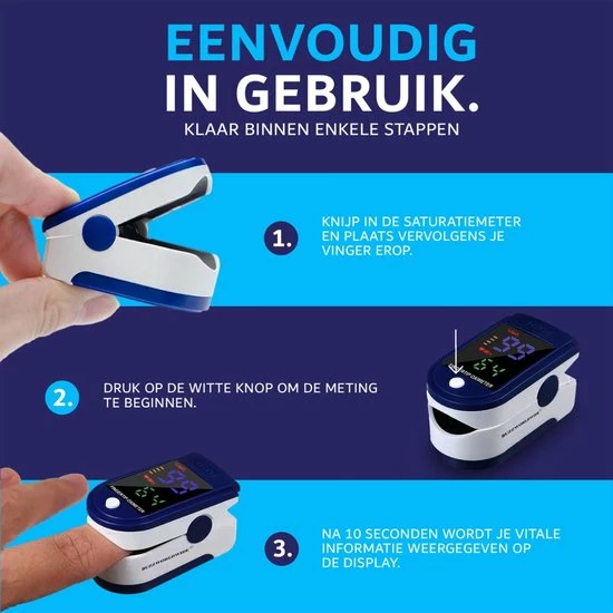 Bestel vandaag de saturatiemeter en meet snel uw hartslag en uw zuurstofgehalte!