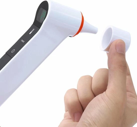 - Met het bijgeleverde opzetstuk de temperatuur meten door in het oor te scannen