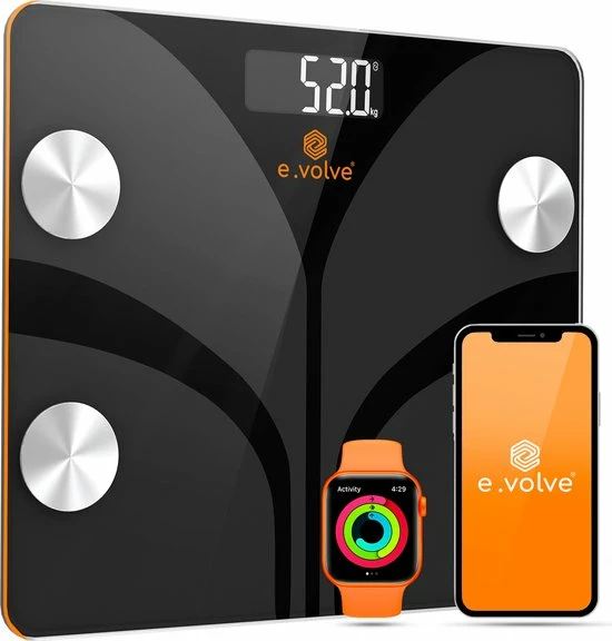 Behaal nu jouw fitnessdoel! Wel 14x gedetailleerde lichaamsanalyse in 1 oogopslag dankzij de bluetooth weegschaal van e.volve. Met behulp van onze exclusieve Fitdays App zie je overzichtelijk jouw vooruitgang in o.a. vetpercentage meter, gewicht, spiermassa en meer! Onze Fitdays app synchroniseert met de gezondheidsapps op iPhone, Samsung en Fitbit.