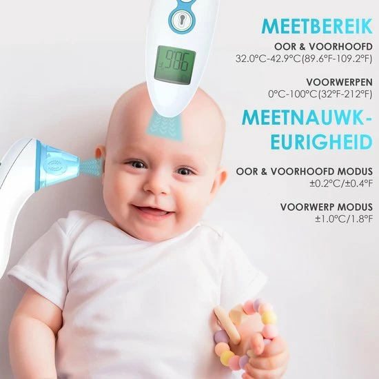 Met deze digitale oor en voorhoofd thermometer krijg je binnen slechts 1 seconde een nauwkeurig resultaat waardoor het niet meer lastig is voor ouders om de temperatuur te meten, en ook niet vervelend voor kinderen!