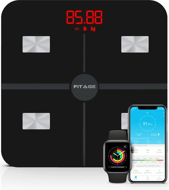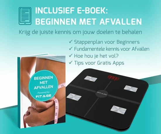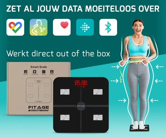 Behaal jouw gezondheidsdoelen met de FITAGE personenweegschaal. Deze weegschaal geeft jou de juiste handvatten om gezonde gewoontes te ontwikkelen en gemotiveerd te blijven. Jezelf wegen en het bijhouden van je resultaten is ontzettend belangrijk voor je progressie. Daarom is de FITAGE personenweegschaal met lichaamsanalyse een uitkomst voor iedereen die wil starten of al serieus bezig is met afvallen, fitter worden of spiermassa opbouwen. De weegschaal met gratis app geeft je gemakkelijk, snel en nauwkeurig inzicht in de gezondheid van jouw lichaam, ?n de boost die je nodig hebt om al jouw fitnessdoelen te bereiken. Maak het een sport om te zien hoe jouw lichaam ervoor staat!
