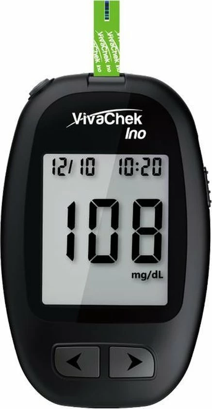De VivaChek Ino is een bloedglucosemeter die eenvoudig te gebruiken is. De bloedsuikermeter heeft een opslagcapaciteit van 900 resultaten. In het menu kunt u aangeven of u voor of na een maaltijd heeft getest, hierdoor heeft u altijd een betrouwbare uitslag. De VivaChek Ino biedt u de beste prijs-kwaliteitverhouding en betrouwbare bloedsuiker testresultaten. De VivaChek Ino glucosemeter voldoet aan de ISO15197:2015 norm, dit houdt in dat deze aan de strengste eisen wat betreft accuratesse voldoet. De meter wordt geleverd met een Nederlandstalige handleiding.