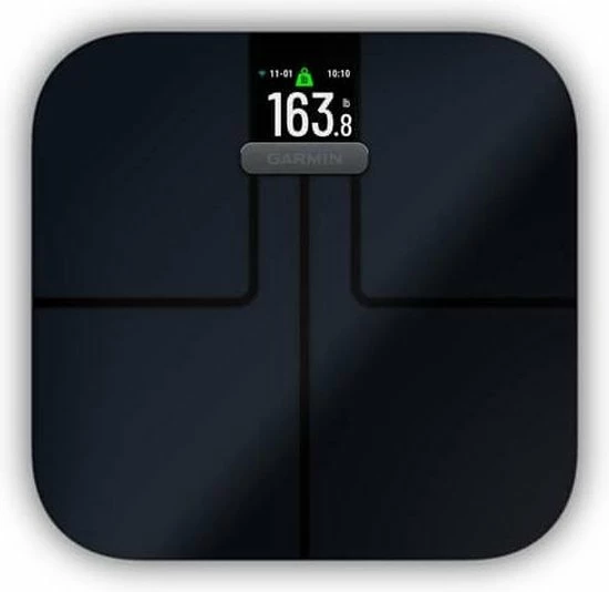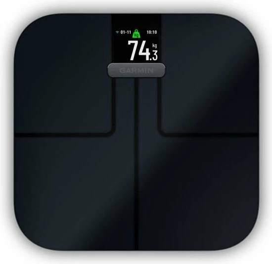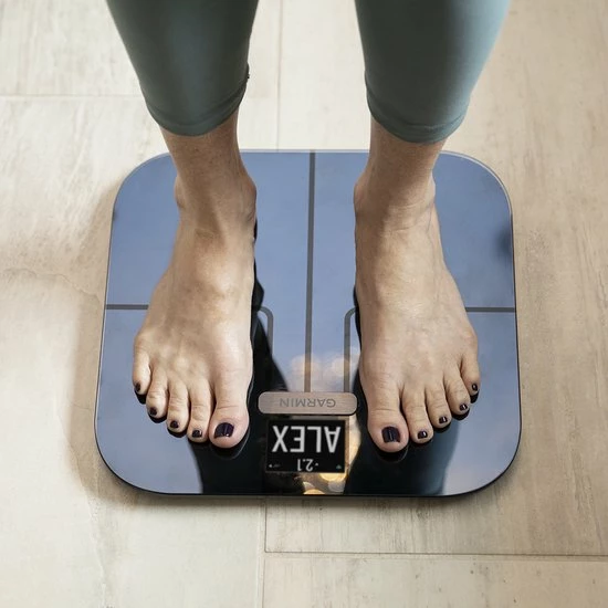- Deze weegschaal analyseert je gewicht, BMI en vetgehalte en verzamelt de data in de Garmin Connect? app