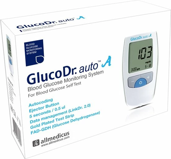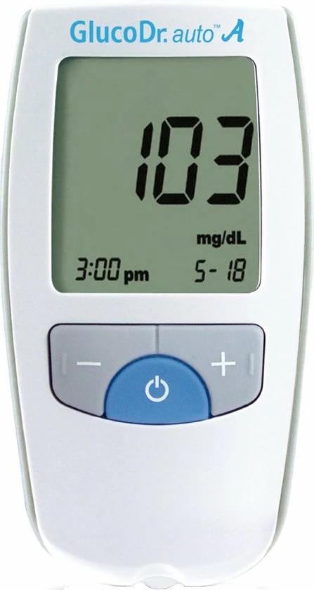 De GlucoDR bloedglucosemeter is een gebruiksvriendelijk en handig apparaat om het bloedglucose mee te meten. De bloedglucosemeter kan tot wel 500 metingen opslaan. De GlucoDR bloedsuikermeter geeft een zeer nauwkeurig resultaat in slechts 5 seconden. De bloedsuikermeter is voorzien van een knop voor het uitwerpen van strips om extra controle voor professionals mogelijk te maken. De bloedsuikermeter heeft een groot scherm waardoor de testresultaten gemakkelijk af te lezen zijn.