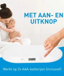 De digitale babyweegschaal werkt op 2 AAA batterijen (inclusief). Hij heeft een aan-/ uitknop en schakelt zichzelf na verloop van tijd uit om energie te besparen. Ook krijg je een melding als de batterijen bijna leeg zijn. In dat geval geeft de display ‘LO’ aan.