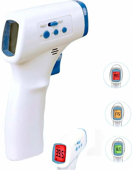 Deze Grundig Infrared Thermometer bewaakt de temperatuur zonder contact binnen enkele seconden. U hebt de optie om Celsius of Fahrenheit te gebruiken. Deze infrarood contactloze klinische thermometer vertoont lichaamstemperaturen in drie verschillende kleurcodes. Na 1 seconde wordt de meting gepresenteerd. Objecten kunnen ook worden gemeten met behulp van een thermometer. Houd er rekening mee dat de contactloze IR-thermometer verschilt van andere soorten thermometers zoals oor-, mond- en rectale thermometers. Vanwege het effect van de omgeving verschilt de weergegeven temperatuur van de reële lichaamstemperatuur met maximaal 2 graden. In een korte afstandspunt wordt de klinische thermometer op uw voorhoofd en uw lichaamstemperatuur getoond. U kunt ook kiezen tussen dieren en dingen om bijvoorbeeld de temperatuur van een warm drankje te controleren. Na de meting wordt de thermometer uitgeschakeld met behulp van de ingebouwde geautomatiseerde uitschakeling, waardoor onnodig batterijgebruik wordt voorkomen. Deze infrarood klinische thermometer kan u meteen vertellen of uw lichaamstemperatuur zich nog steeds binnen normale grenzen bevindt of dat u een arts moet zien.