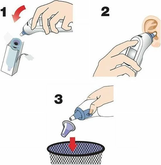 Om deze meting zo nauwkeurig mogelijk te doen heeft u elke keer een nieuwe, schone lensfilter nodig. Wanneer u de thermometer hoesjes niet vervangt, is het mogelijk dat de temperatuur niet correct gemeten wordt doordat er bijvoorbeeld vuil (zoals oorsmeer) aan kan blijven zitten.