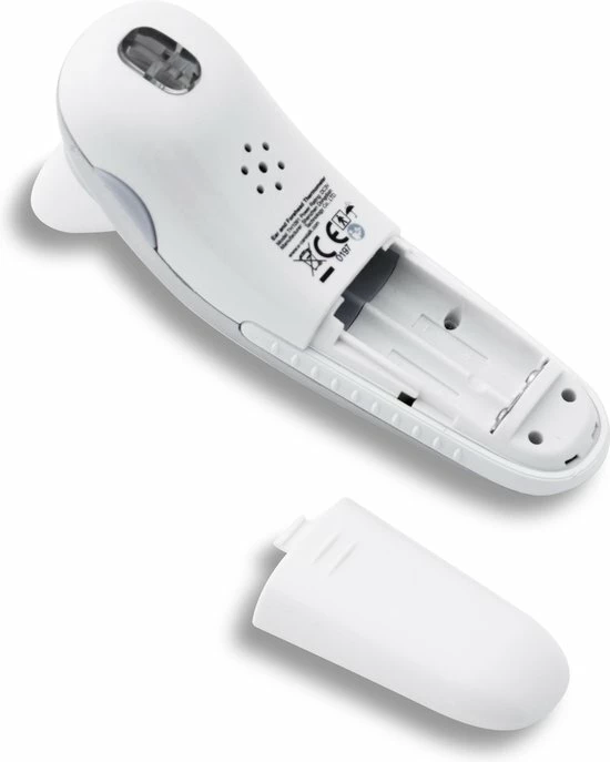 Deze thermometer meet de lichaamstemperatuur met infrarood. Het grote voordeel hiervan is dat je geen contact hoeft te maken met de huid. Dat is ideaal voor een temperatuurmeting bij een baby. De ingebouwde sensor geeft aan of de afstand tot de huid juist is.