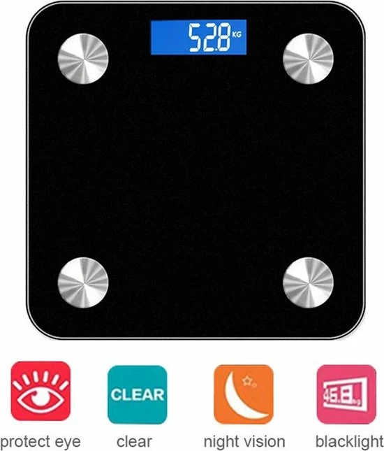 Deze Slimme weegschaal is van hoge kwaliteit. Het apparaat is voorzien van gepantserd glas, een zeer nauwkeurige sensor, groot oppervlak en een Lcd-scherm.