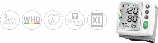 De meetresultaten worden automatisch met vermelding van datum en tijdstip van de meting opgeslagen in het geheugen van de polsbloeddrukmeter. U kunt deze polsbloeddrukmeter gebruiken voor twee personen, waarbij u per persoon 120 metingen kunt opslaan in het geheugen van de polsbloeddrukmeter. Dit is niet alleen ideaal voor thuis, maar ook wanneer u bijvoorbeeld op reis het verloop van uw bloeddruk wilt bijhouden, of de laatste metingen wilt doornemen met uw (huis-)arts!