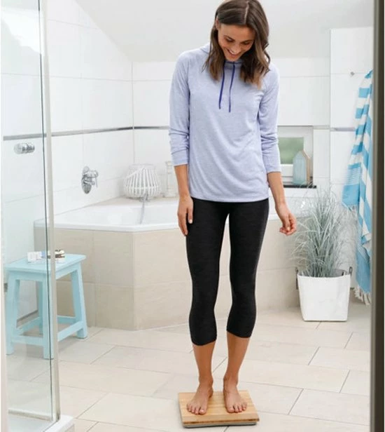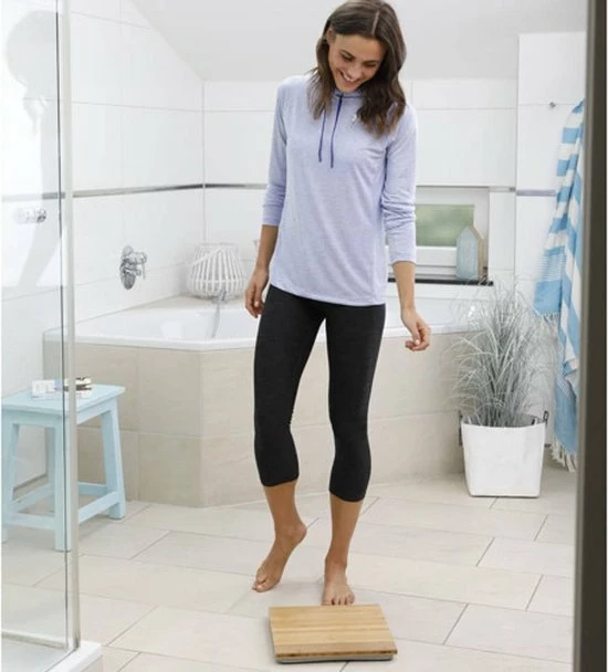 - Personenweegschaal met een hoogwaardig oppervlak van bamboe voor een aangenaam gevoel aan de voeten