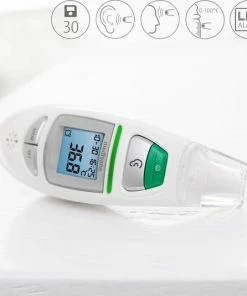 De TM750 meet de temperatuur op het voorhoofd van uw kind. Dit is wel zo makkelijk bij een vervelende ziekte periode. Razendsnel worden honderden metingen binnen een korte periode verricht, waarna de juiste lichaamstemperatuur wordt berekend en op het duidelijke display verschijnt. Is er koorts geconstateerd, dan kleurt het display rood en hoort u een signaaltoon.