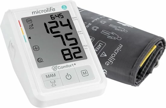 De Microlife BP B3 Comfort is de nieuwe (2021) klinisch gevalideerde bovenarm bloeddrukmeter van Microlife. De bloeddrukmeter is voorzien van diverse betrouwbare Microlife technieken. De meter wordt compleet geleverd en beschikt over diverse mogelijkheden voor het snel en eenvoudig opnemen van de bloeddruk. Daarnaast is de B3 Comfort voorzien van een PC aansluiting en de nieuwe techniek: ”Inflation Mode Technology” (IMT). De meter maakt g??n geluid tijdens het oppompen.