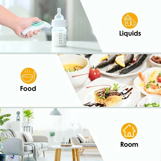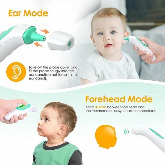Richt de thermometer op uw voorhoofd en druk op de knop, waarna hij binnen 1 seconde uw temperatuur meet met een hoge nauwkeurigheid.