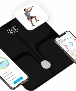 - Meet gewicht, vetpercentage, BMI, lichaamsvochtpercentage, vetvrije massa, vetmassa, vet (visceraal), spierpercentage, spiermassa, botmassapercentage, botmassa, metabolische leeftijd en basaal metabolisme.