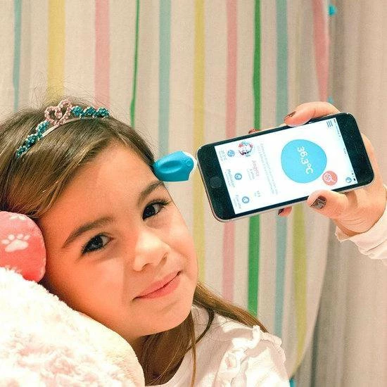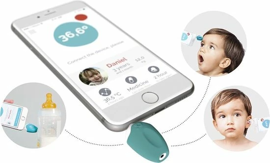 - De handige bijbehorende app biedt nog wat extraatjes: Het registreert de metingen zodat je het verloop van de temperatuur kan bijhouden. Het rekent medicatie voor je uit en biedt alarmen of notificaties wanneer je medicatie moet nemen. Je kunt zo veel profielen aanmaken voor de gebruikers van de thermometer. Informatie kan makkelijk gedeeld worden.