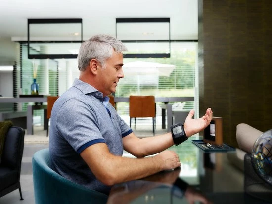- Ga in de juiste positie zitten: ontspannen op een stoel waar de rug en armen worden ondersteund. De manchet moet zichongeveer op dezelfde hoogte bevinden als uw hart