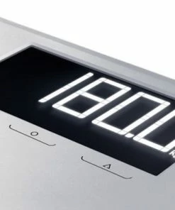 Bovendien heeft de weegschaal een zeer hoog draagvermogen tot 180 kg, nauwkeurig weergegeven in stappen van 100 g. De weegschaal heeft een dun ontwerp, anti-slip voetjes en een groot plat weegplateau van bijzonder sterk veiligheidsglas. De automatische, energiebesparende aan/uit-functie is ook erg handig.