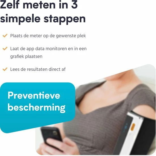 Plaats de bloeddrukmonitor op de gewenste plek, zet hem aan, en laat de bijgeleverde app voor op de smartdevice alle data monitoren en in een grafiek plaatsen. Hierdoor heb je binnen 3 stappen direct inzicht in jouw gezondheid.