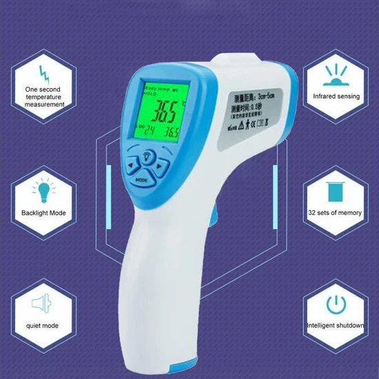 - Schakel tussen Fahrenheit- en Celsius-meting met ??n klik, wat erg handig is, 1 seconde snelle meting met onmiddellijke uitlezing, plus mute-modus, 32 sets metingen worden geregistreerd om de veranderingen in de lichaamstemperatuur beter te volgen