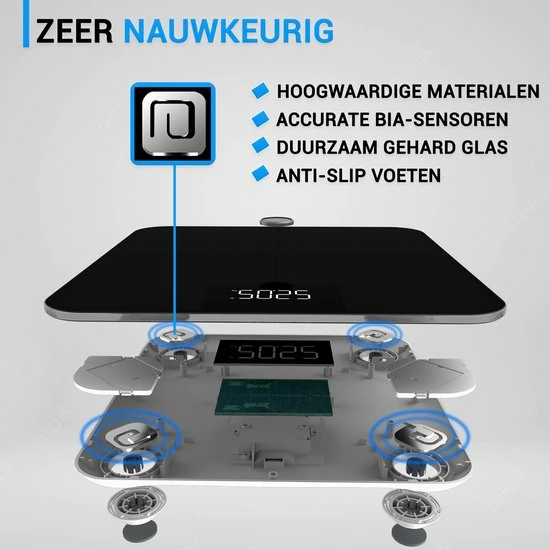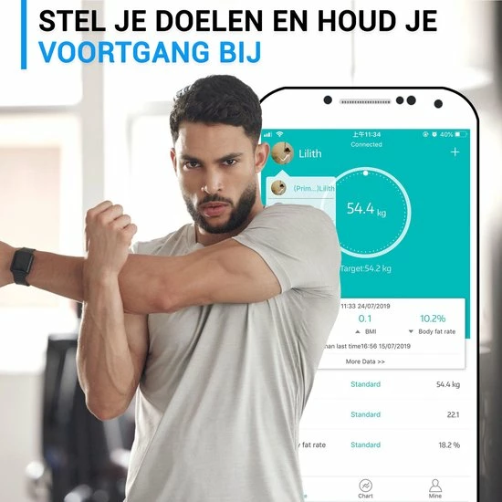 - Onmisbaar voor sporters ? Deze smart weegschaal is ook een handig hulpmiddel voor sporters. Je ziet in een oogopslag of je spiermassa aan het toenemen is, hoeveel prote?ne er in je lichaam aanwezig is en zelfs wat je vetvrije massa is.