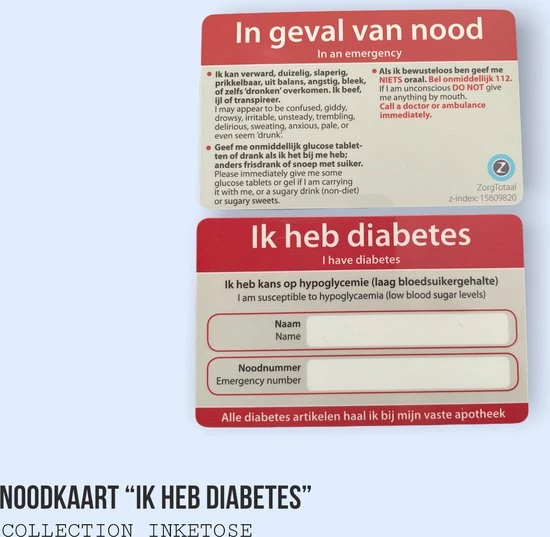 Noteer naam en noodnummer op het kaartje voor noodgevallen. U draagt dit kaartje bij u.